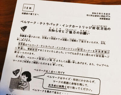 ベルマーク・テトラパック・インクカートリッジの回収は引き続き行いますので、来年度も皆さまのご協力をお願いいたします。