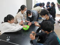 石の標本に群がっているのは6年生!