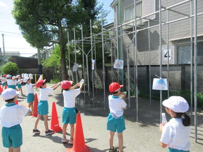 7月17日(木)水となかよし(1年生) 投稿日時 : 07/17 宮田小学校管理者 1年生がペットボトルやマヨネーズなどの容器を使って的当てなどをしながら楽しんでいました。どうやったら勢いよく水が飛ぶの?的に向かってまっすぐ飛ばすには・・・子供たちは色々考えながら取り組んでいました。