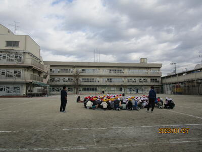 校庭で遊んでいた子どもたちは、校庭中央へ!