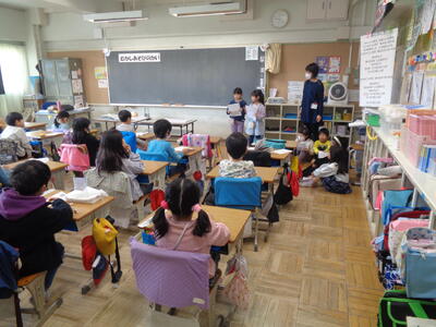 朝からお客様を迎える1年生たち...