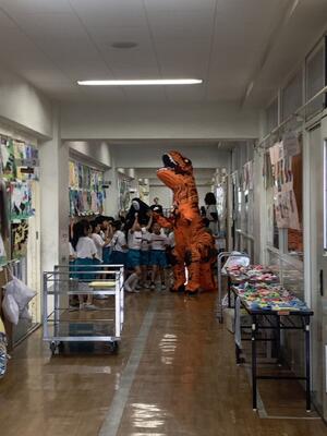 ハッピーハロウィン! 投稿日時 : 2024/10/31 宮田小学校管理者 ハロウィンを楽しむ宮田っ子(^^) 1年生は可愛い飾りつけ(@_@) ハロウィンで秋祭り!(^^)! お昼には「カオナシ」と「宮ザウルスの親ザウルス」が宮田っ子に会いにきたそうな... ハロウィンもレッツエンジョイ♪
