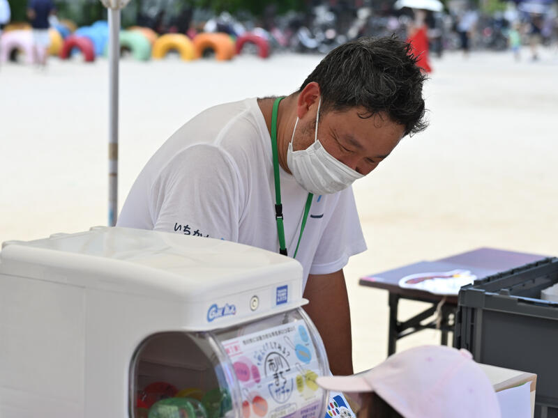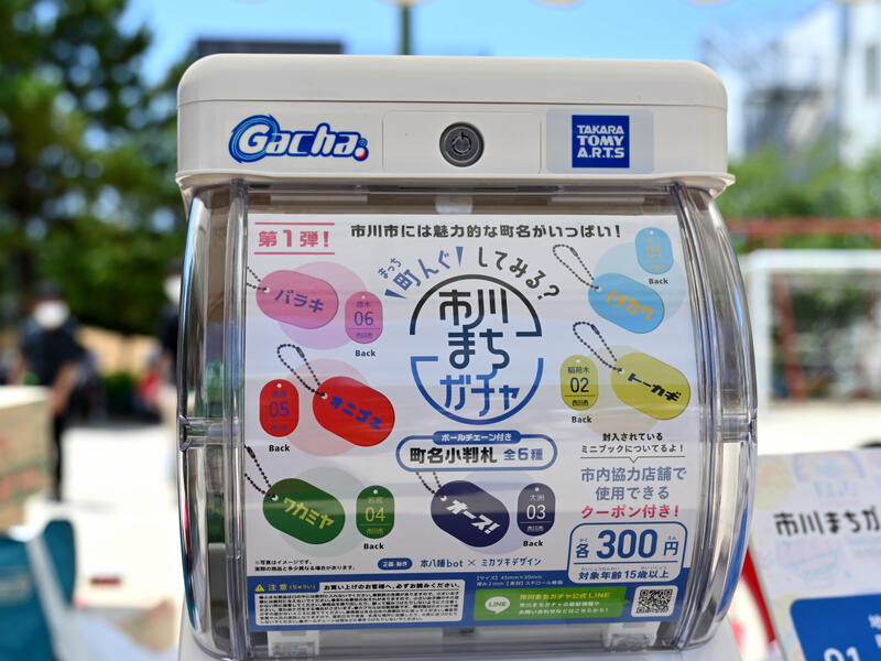 ↑市川まちガチャ。市内の町名が印刷された町名小判札が出てきます。会場ではオース!(大洲)が人気でしたよ。