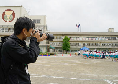 ↑運動会での撮影の様子。このように撮られた写真が「みやたいむ」内に掲載されています。