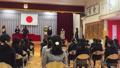 ↑祝い菓子は校章の焼き印入り(過去の卒業式)