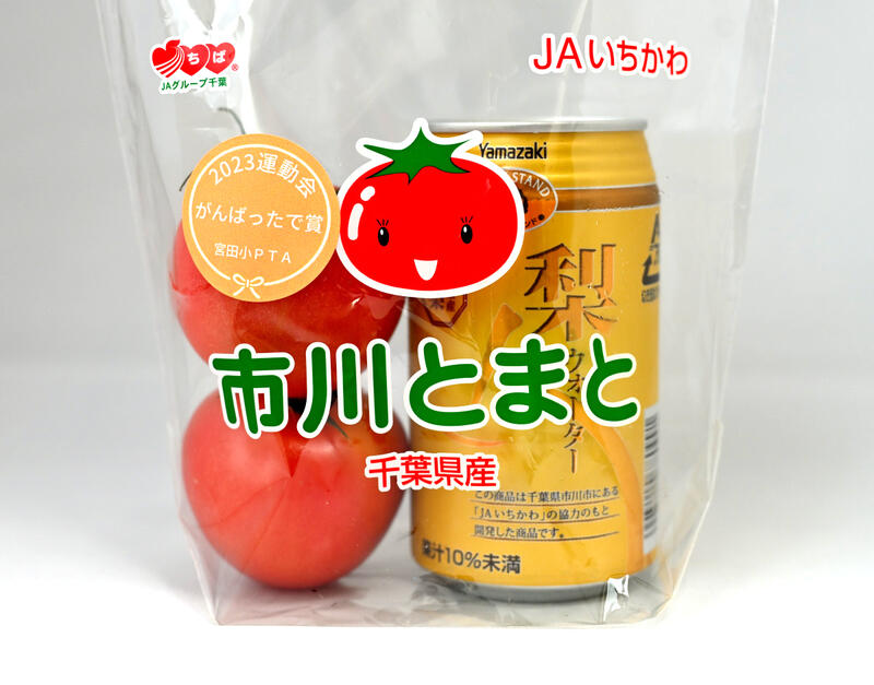 昨年同様、PTAから「運動会がんばったで賞」として「市川とまと」と「梨ウォーター」を贈呈しました。