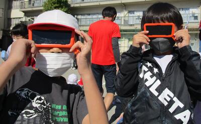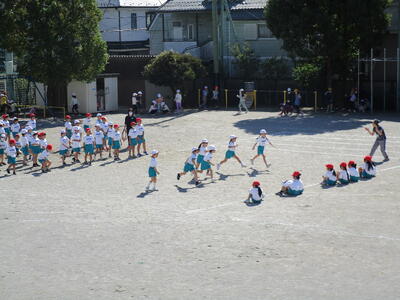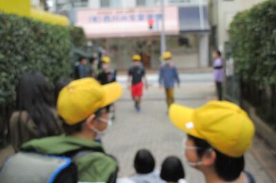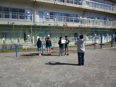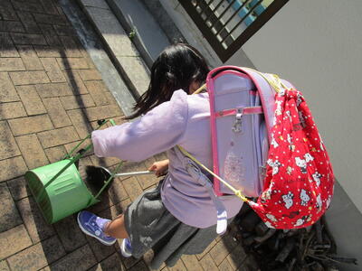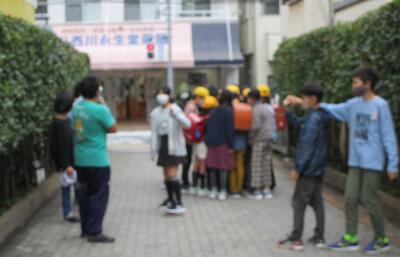 お昼休みなのに校門付近にランドセルを背負った子どもたちを発見。