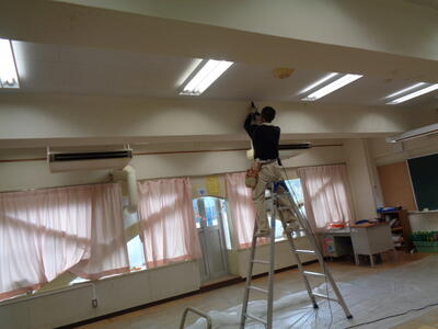 天井から水漏れしていた教室の修繕も順調です。