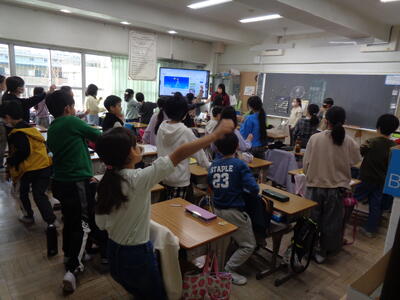 どれだけ獲得できるか楽しむ活動です。「講堂のなわとびが楽しかった」などの感想があり、子供たちの笑顔がたくさん見られました。学校運営協議会委員の皆様も参加し、楽しい思い出を作りました。