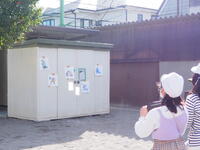 校庭では理科の実験!光を反射させてキャラクターにあてよう!!