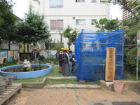 晴れ渡る青空の中、笑顔いっぱいで下校しました。亀たちもお見送りです。