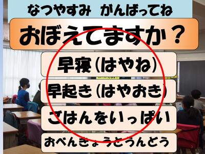 その後は、夏休みの宿題の提出や思い出発表など、どの学級も和やかに活動していました。