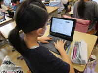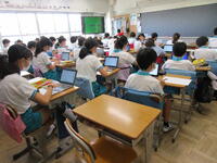 3年生、タブレットを使用しての学習。