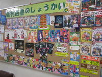 図書室前の掲示板、華やか!...宮田っ子は本が大好きです。