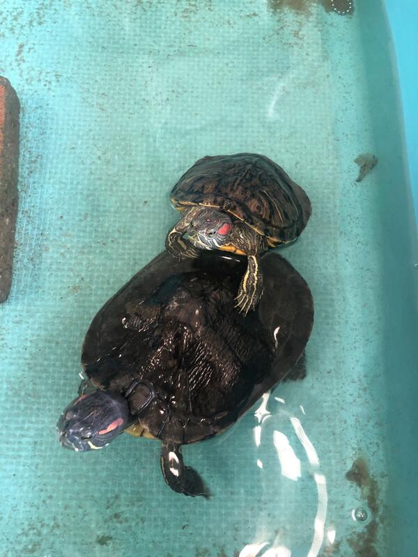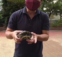 広いメダカ池を悠々と泳ぐかめごん、とても気持ちよさそうでした。