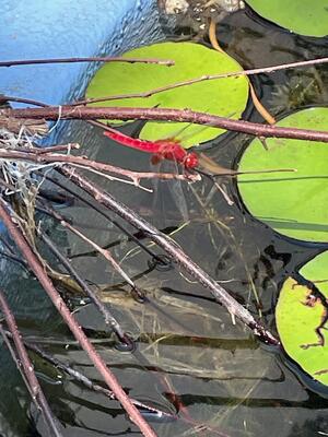 メダカ池にはいつもトンボが飛び交っています>^_^<