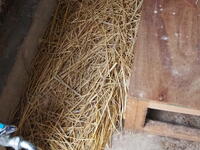 山梨の農家さんからいただいたたくさんの藁が、暑さしのぎになっているようです。