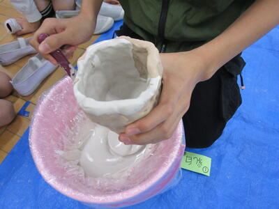 6年陶芸教室、色付けです(^^)