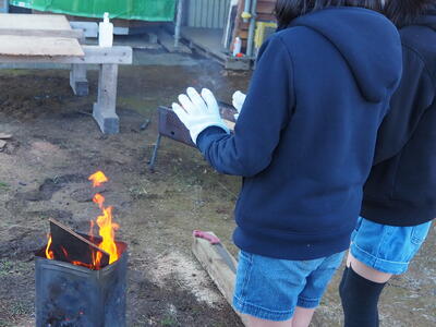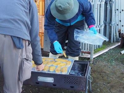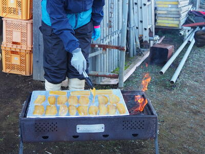 いつもお世話になっている「岡本さん」乾燥芋を火で炙ってふるまってくれました!