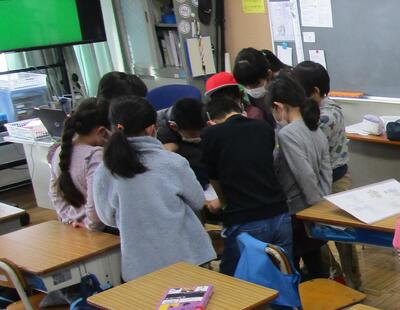 教室で画面を見つめる子どもたち...