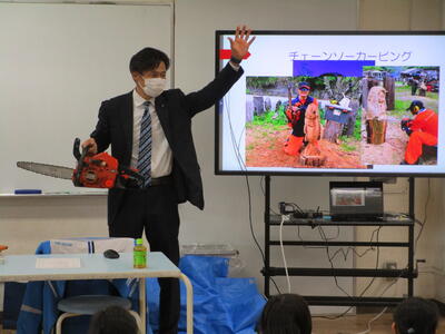 本日の「地域の人材を活用した授業」、3年1組にいらしてくださったのは、前PTA会長の鹿島田さん!