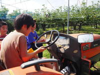 その後は、広大な畑を自由に散策、草刈り機やトラクターの試乗も?!