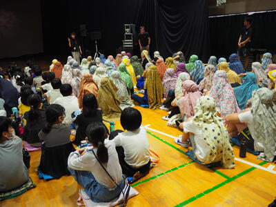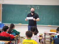 「オーラ」「ニイハオ」と、子どもたちは予習したスペイン語や中国語であいさつを。