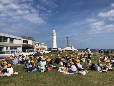 犬吠埼灯台と海を見ながら、みんなで食べるお弁当は最高でした!