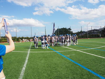 9月にフラッグフットボールを教えに来てくださった「ブルーサンダース」の皆様が、選手入場セレモニーに招待してくださいました!
