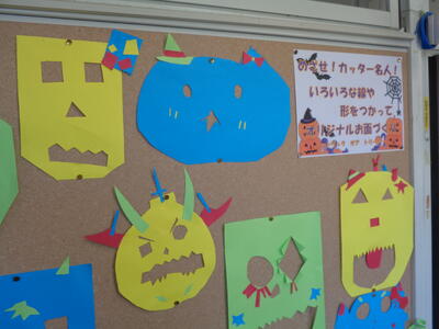 「お化けかぼちゃ」に顔を描いてくれている宮田っ子!