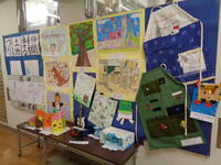 職員室前の廊下には、市内作品展に出展された学校代表の作品!