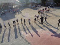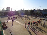 さわやかな青空のもと、明日の朝スポに向けて練習に励む宮田っ子...