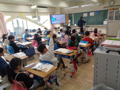 今日も4年生が2年生に調べたことをパワーポイントで発表!