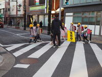 安全主任からの大切なお話をしっかり聞き入る宮田っ子。