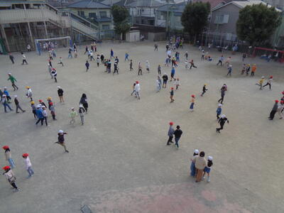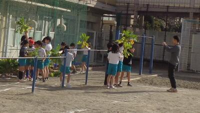 校庭で遊んでいた子どもたち...
