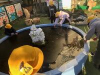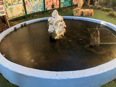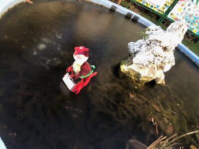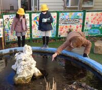 宮田っ子広場のメダカ池が初氷!