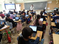 放課後、市川市教育委員会の教育センターの先生方がICT授業のレクチャーに来てくださいました(^^)