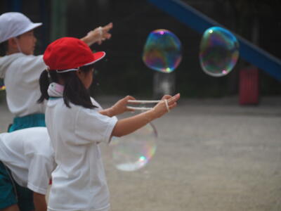 シャボン玉教室!(写真は昨年度の様子です)の予定でしたが...