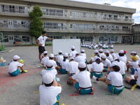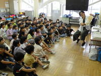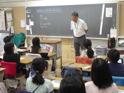 PTA代表委員会の前に5年生に「宮田の昔」を語ってくださる会長様!(感謝)