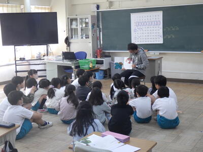生徒指導の先生からは「い・る・か」のお話を!子どもたちもお手伝い!