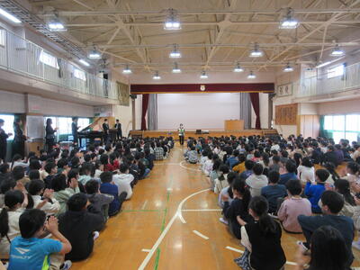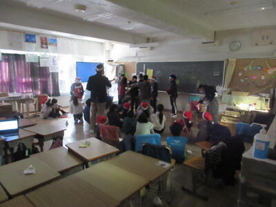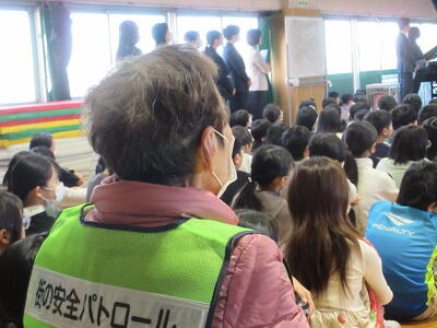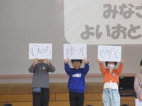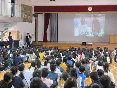 生徒指導の先生からは「い・る・か」のお話を!子どもたちもお手伝い!