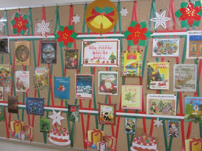 もうすぐクリスマス...図書室前の掲示、いつも素敵です(^^)
