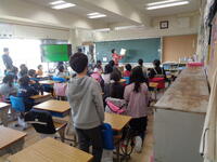 いつも朝早く来てくれる宮田っ子に見守られているカメゴン