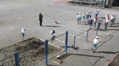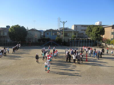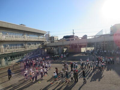 今日の朝スポは兄弟学年での長縄!