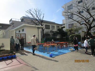 冷たい雪が舞う中、来年度の1年生の保護者様のための入学説明会!