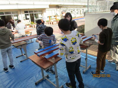 丁寧にペンキ塗り...「はけ」の使い方も上手です!