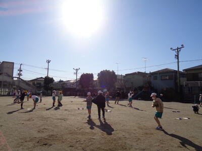 さて、今日は澄み渡る青空のもと、4年生は縄跳び!