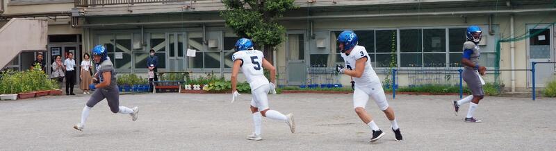 宮田小に社会人アメリカンフットボールチーム「ブルーサンダース」の皆様が!