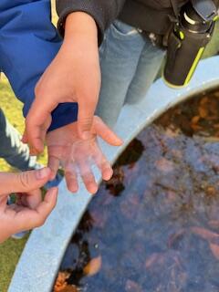 「つめたっ!でも先生に見せにいく~」