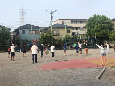 校庭では自治会の皆様が主催するラジオ体操が行われていました(@@)